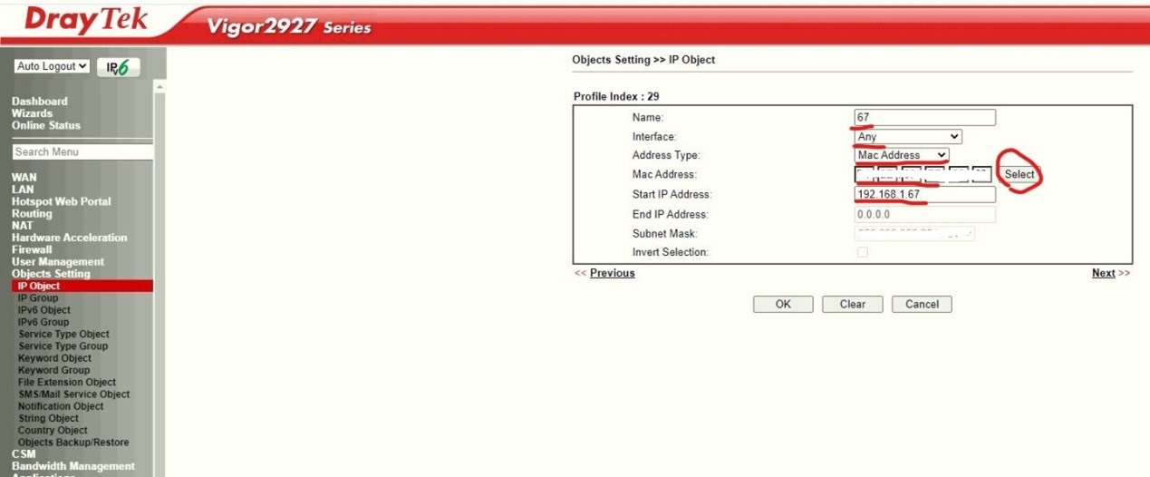 在路由器介面中點擊IP物件新增各個電腦MAC位置以及對應IP。