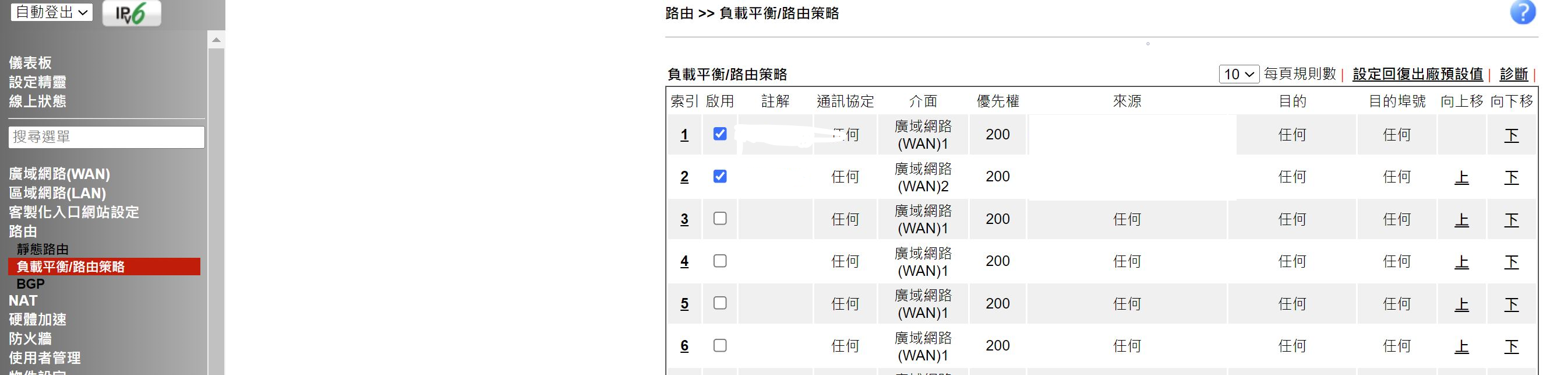 多WAN設定路由策略
