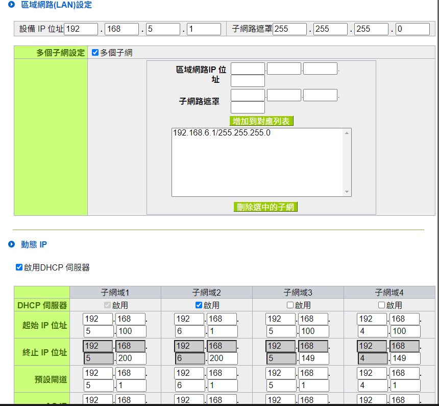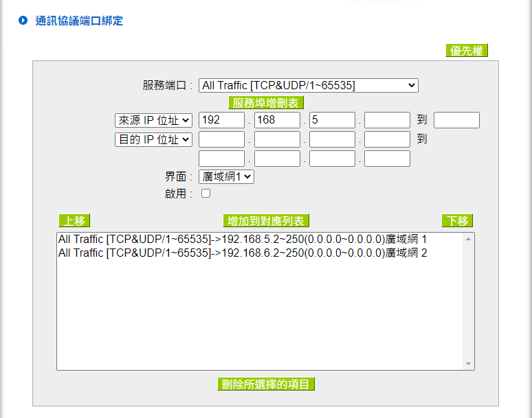 .5跟.6網段分別走不同網路出去,WAN1跟WAN2進行不同網路的分流。