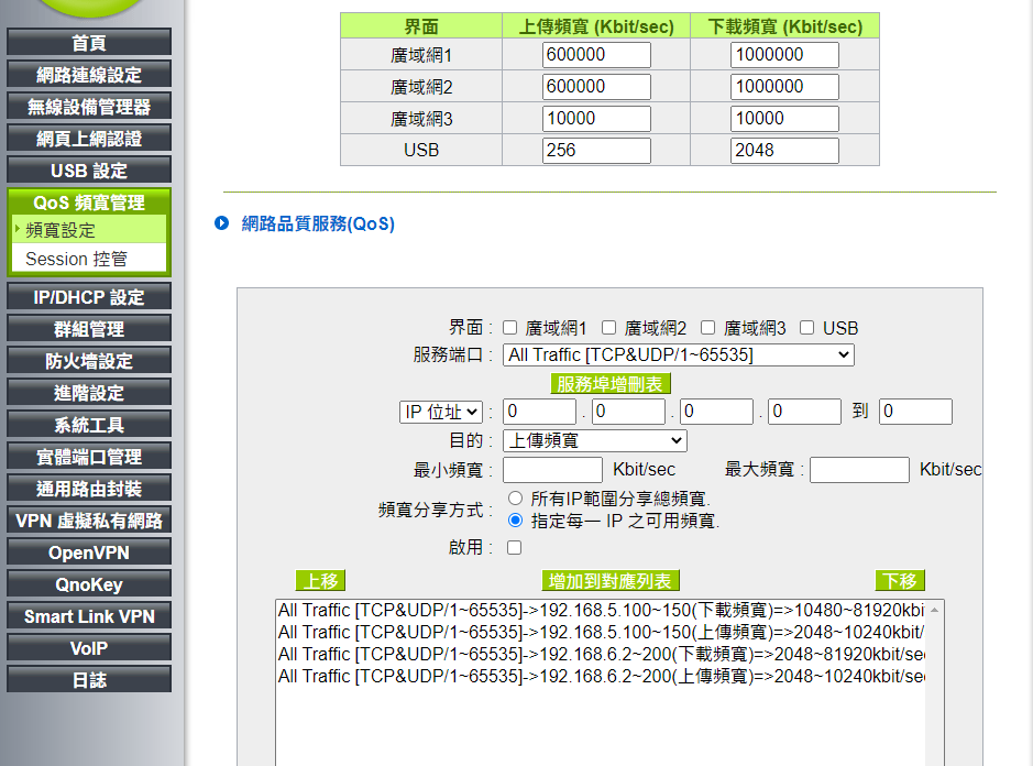 .5跟.6網段分別限制網路上傳與下載速度,避免同時上傳與下載造成網路癱瘓。